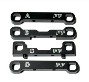 Factory Foote B84 A, B, C, D Blocks for B74 Arms. These suspension mounts enable the use of B74.2 A Arms. Crafted from 7075 aluminum for an optimal balance of strength and weight.